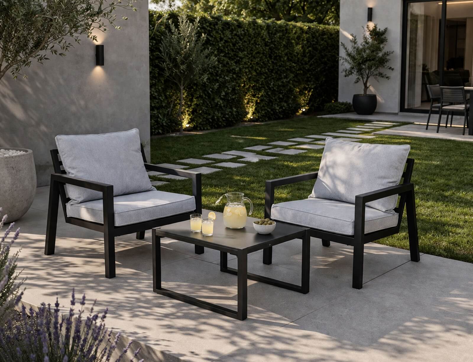 Σετ Σαλόνι Κήπου & Βεράντας Arezzo Lesli Living με καναπέ γωνία, παγκάκι και τραπεζαρία - Αλουμίνιο, Polywood, Πολυεστέρας - Απόχρωση Γκρι