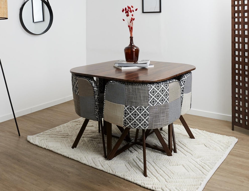 Εξυπνη Τραπεζαρία Home Deco Factory με 4 Καρέκλες που Μπαίνουν Εσωτερικά και πιάνει ελάχιστο Χώρο - Γκρι