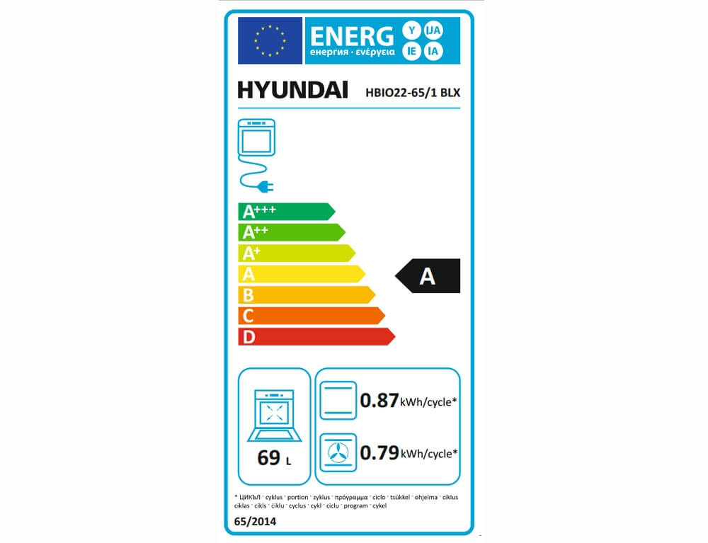 Εντοιχιζόμενος φούρνος Hyundai HBIO22-65/1 BLX με χωρητικότητα 69L και ενεργειακή κλάση Α