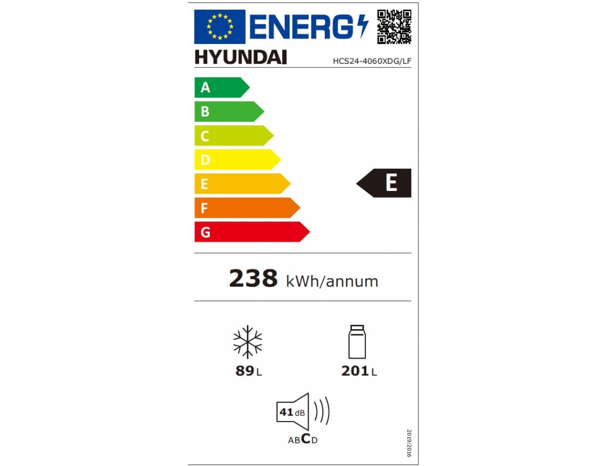 Ψυγειοκαταψύκτης Hyundai HCS24-4060XDG/LF Total No Frost με Συνολική Χωρητικότητα 290L, Ενεργειακή Κλάση E και Ύψος 185cm