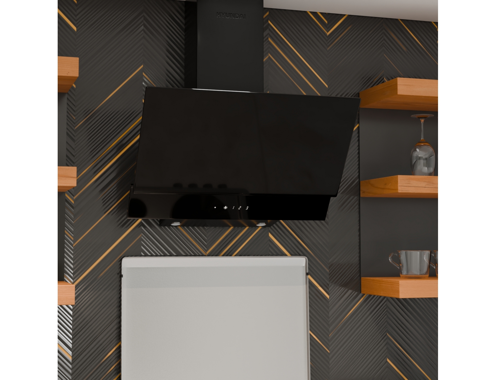 Απορροφητήρας Hyundai HHD24-GL4661B με πλάτος 60cm και απορροφητική ισχύ 650 m³/h - Black
