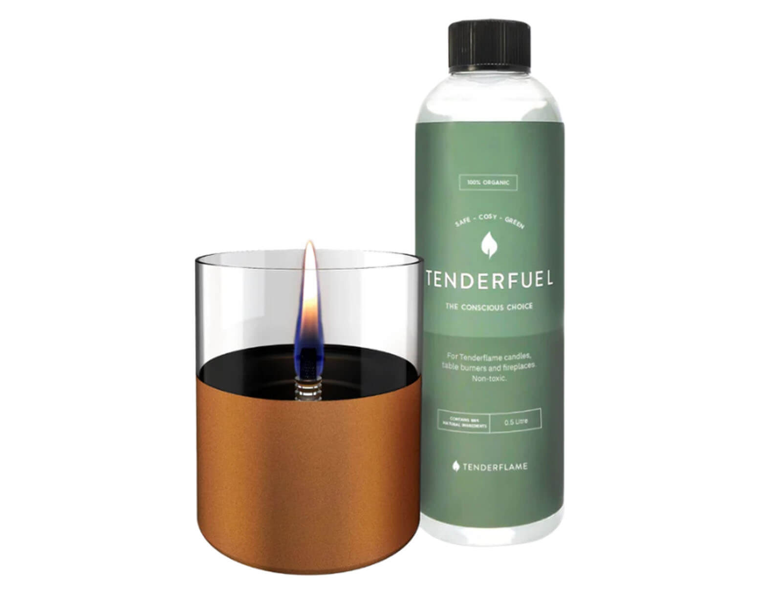 Ένα από τα κύρια οφέλη του Tenderfuel είναι η ασφάλειά του. Είναι σχεδιασμένο να μην αυτοαναφλέγεται, μειώνοντας τον κίνδυνο πυρκαγιάς. Αυτό το χαρακτηριστικό το καθιστά ιδιαίτερα κατάλληλο για εσωτερικούς χώρους όπου η ασφάλεια είναι πρώτη προτεραιότητα. Το Tenderfuel είναι μη τοξικό, ωφελεί τόσο την ανθρώπινη υγεία όσο και το περιβάλλον. Ως προϊόν φιλικό προς το περιβάλλον, το Tenderfuel ανταποκρίνεται στην αυξανόμενη ζήτηση των καταναλωτών για βιώσιμα προϊόντα. Είναι μια υπεύθυνη επιλογή για όσους έχουν περιβαλλοντική συνείδηση. Σε συνδυασμό με το πατενταρισμένο μας φυτίλι από ανοξείδωτο χάλυβα, καίγεται σε θερμοκρασία άνω των 100 βαθμών, εξασφαλίζοντας πλήρη καύση. Αυτό έχει ως αποτέλεσμα να μην εκπέμπονται αιθάλη, καπνός ή οσμή, καθιστώντας την την πιο καθαρή φλόγα περιβάλλοντος στον κόσμο.