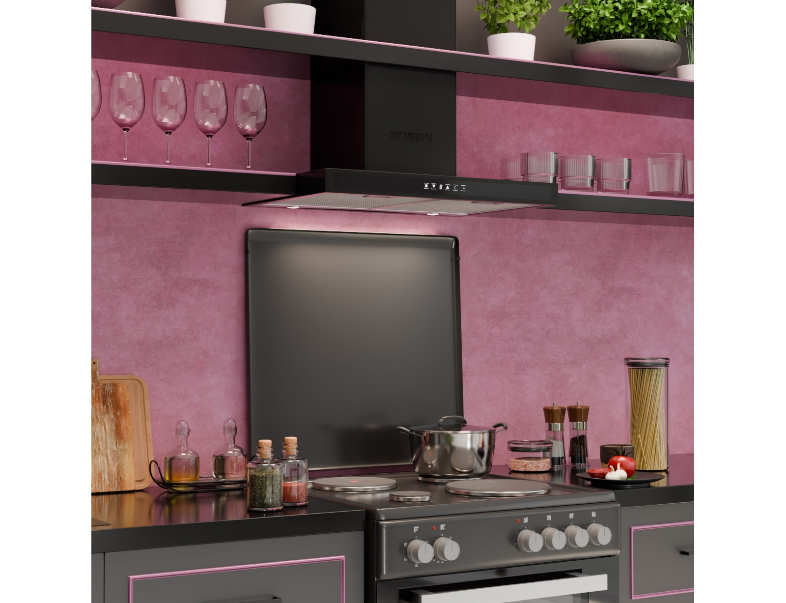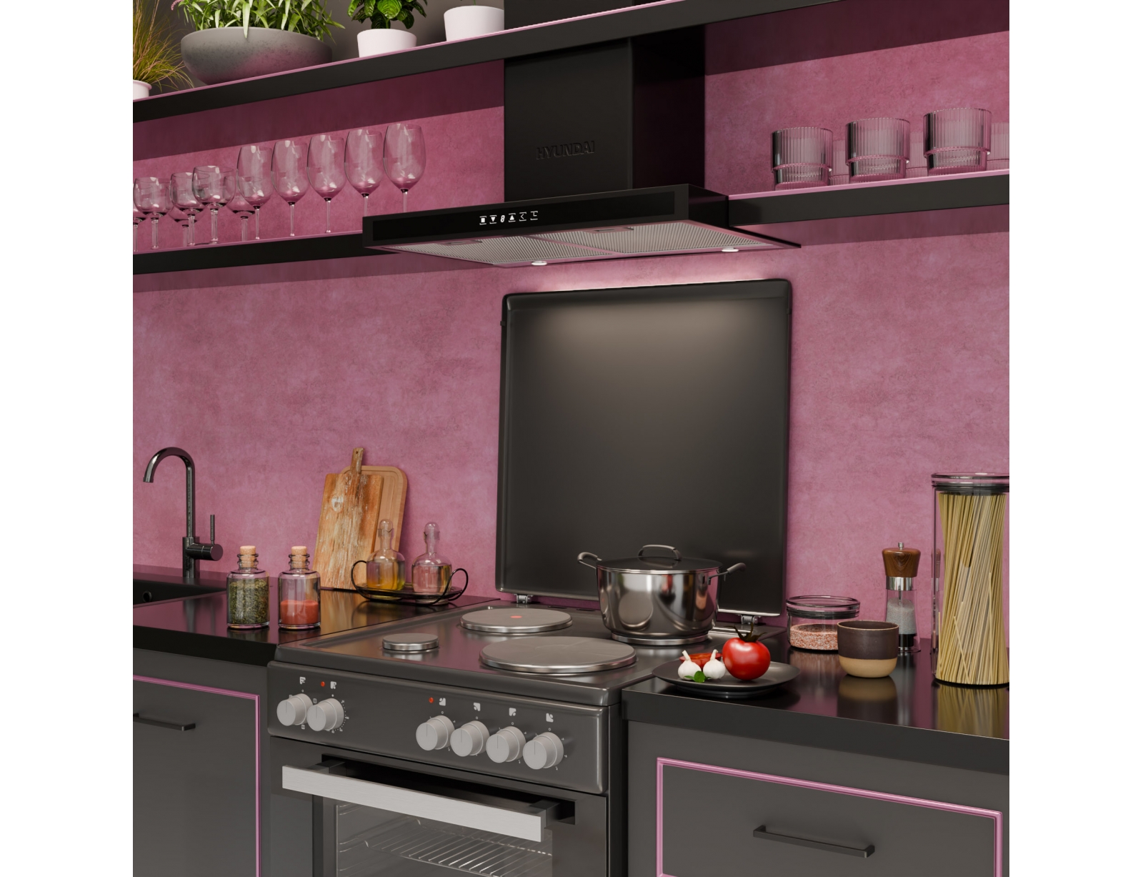 Ο απορροφητήρας Hyundai HHD25-T9662TBL/T διαθέτει κομψό σχεδιασμό σε μοντέρνο μαύρο φινίρισμα με μαύρο γυάλινο πάνελ που θα αναδείξει την κουζίνα σας, ενώ παράλληλα θα σας αφήσει απόλυτα ικανοποιημένους από τις επιδόσεις του.