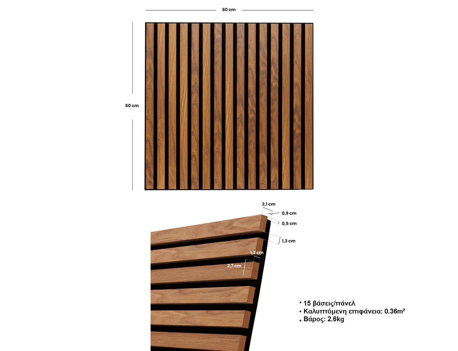 Ηχοαπορροφητική Επένδυση Τοίχου 3d Colva Atmosphera με διαστάσεις 60x2.1x60cm - Walnut