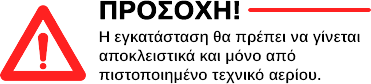 Η εγκατάσταση θα πρέπει να γίνεται αποκλειστικά και μόνο από πιστοποιημένο τεχνικό αερίου.