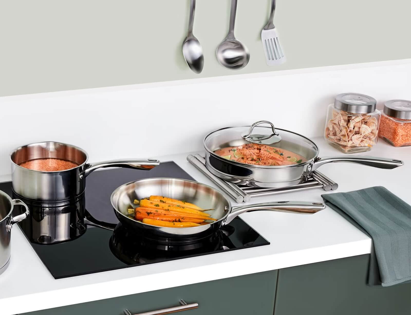 - Κατάλληλο για εστίες αλογόνου, ηλεκτρικές εστίες, κεραμικές, επαγωγικές και εστίες υγραερίου