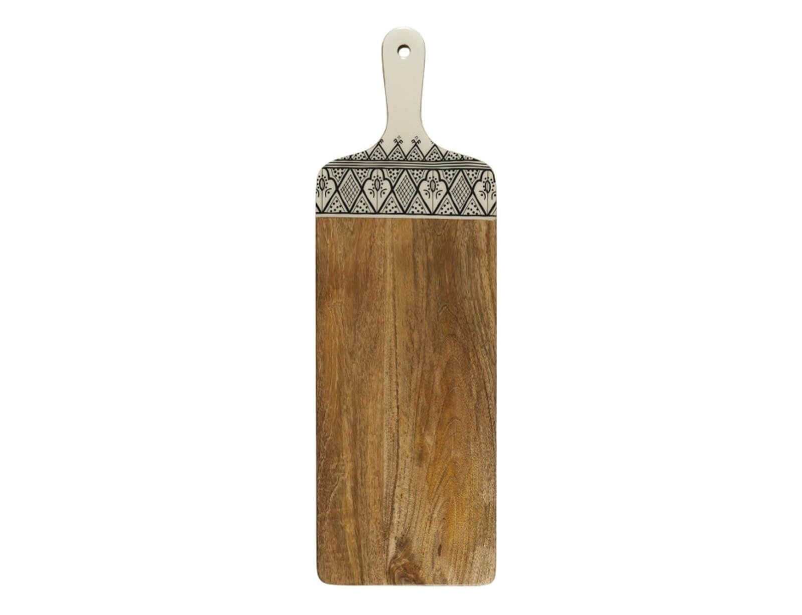 H επιφάνεια σερβιρίσματος της εταιρείας Home Deco Factory αποτελεί ένα πρακτικό στοιχείο για το σπίτι σας, αφού μπορείτε να σερβίρετε ότι θέλετε ή ακόμα να την έχετε και ως διακοσμητικό στην κουζίνα ή στο τραπέζι σας. Είναι κατασκευασμένη από ξύλο μάγκο και χαρακτηρίζεται από στιβαρότητα και αντοχή στην παραμόρφωση. Διαθέτει λαβή για πιο εύκολη μεταφορά.