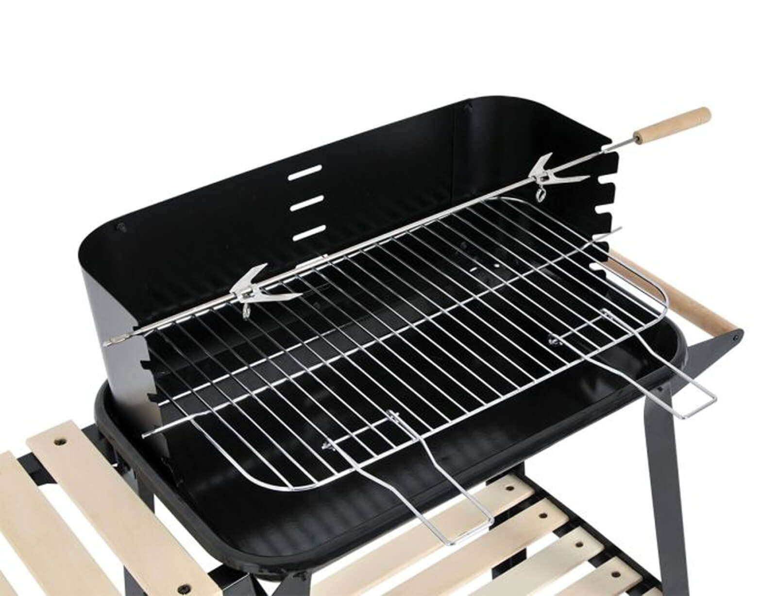 Απολαύστε μοναδικές στιγμές ψησίματος με αυτήν τη ψησταριά BBQ, με μπάρες από φυσικό ξύλο πιστοποιημένο FSC 100%. Διαθέτει ράφι αποθήκευσης, σχάρα, σούβλα και έχει δύο ρόδες για εύκολη μετακίνηση, ενώ η στιβαρή κατασκευή της εξασφαλίζει ασφάλεια και αντοχή.