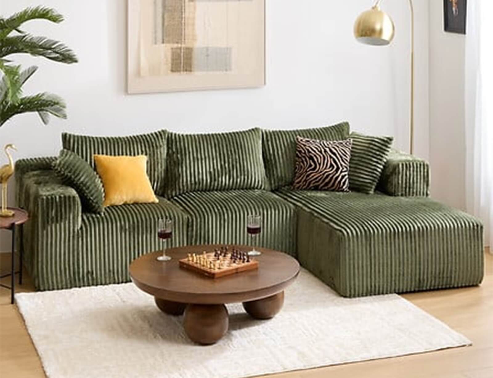 Απολαύστε στιγμές χαλάρωσης και αναβαθμίστε το χώρο σας με τον τετραθέσιο καναπέ από την Atmosphera. Ο μοντέρνος σχεδιασμός του και το κοτλέ ύφασμα σε χακί απόχρωση θα δώσουν στο χώρο σας μια ρετρό και κομψή αισθητική.
