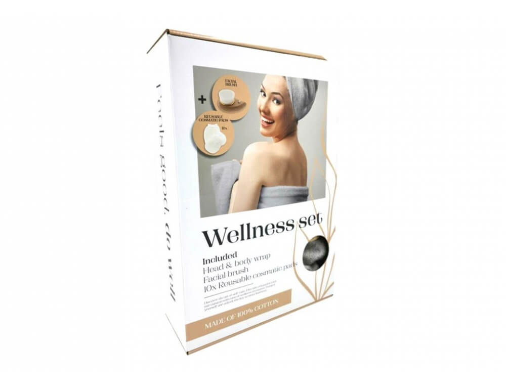 Σετ περιποίησης Fairtrade Wellness Box με πετσέτα, τουρμπάνι, βούρτσα και 10 σφουγγαράκια ντεμακιγιάζ