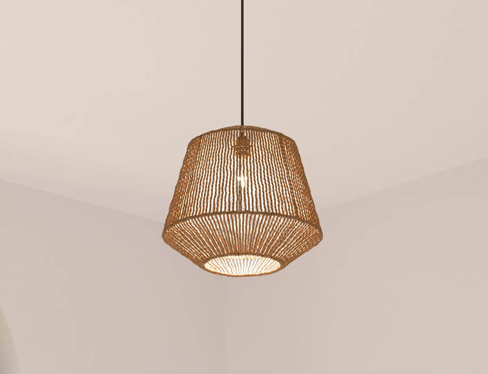 Μονόφωτο κρεμαστό φωτιστικό σε μοντέρνο boho στυλ, κατασκευασμένο από μέταλλο με ψάθινη όψη, ιδανικό για την τραπεζαρία, το σαλόνι ή το υπνοδωμάτιο, δημιουργώντας μια μοναδική ατμόσφαιρα. Ο φυσικός σχεδιασμός κάνει τη λάμπα να προσθέτει ζεστασιά και άνεση στο δωμάτιο. Το διαθέσιμο καλώδιο είναι κατασκευασμένο από PVC με μήκος 90εκ., παρέχοντας την δυνατότητα αυξομείωσης του συνολικού ύψους του φωτιστικού.