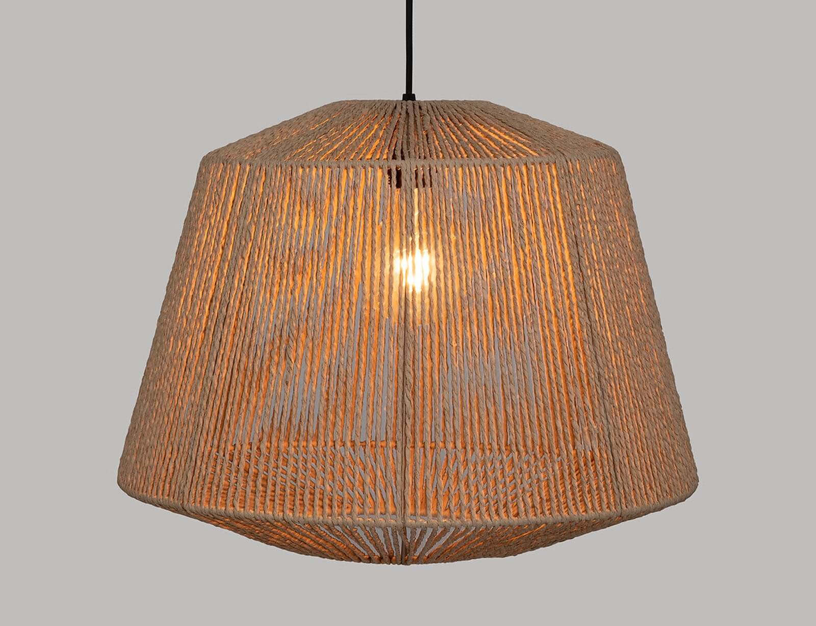Μονόφωτο κρεμαστό φωτιστικό σε μοντέρνο boho στυλ, κατασκευασμένο από μέταλλο με ψάθινη όψη, ιδανικό για την τραπεζαρία, το σαλόνι ή το υπνοδωμάτιο, δημιουργώντας μια μοναδική ατμόσφαιρα. Ο φυσικός σχεδιασμός κάνει τη λάμπα να προσθέτει ζεστασιά και άνεση στο δωμάτιο. Το διαθέσιμο καλώδιο είναι κατασκευασμένο από PVC με μήκος 90εκ., παρέχοντας την δυνατότητα αυξομείωσης του συνολικού ύψους του φωτιστικού.