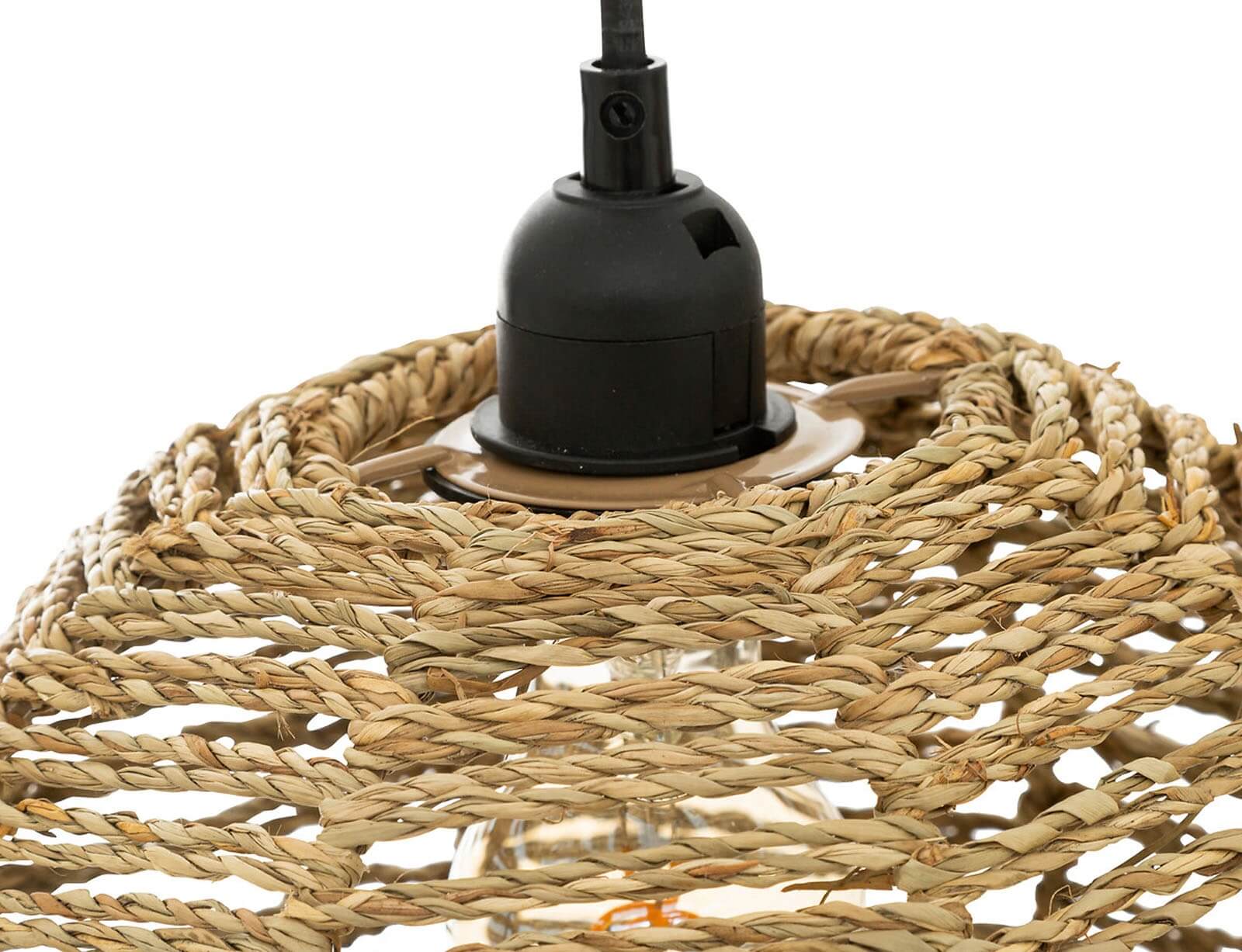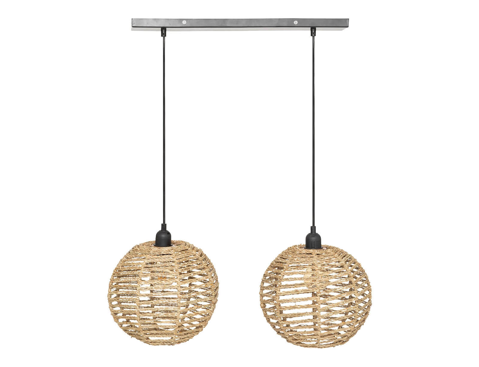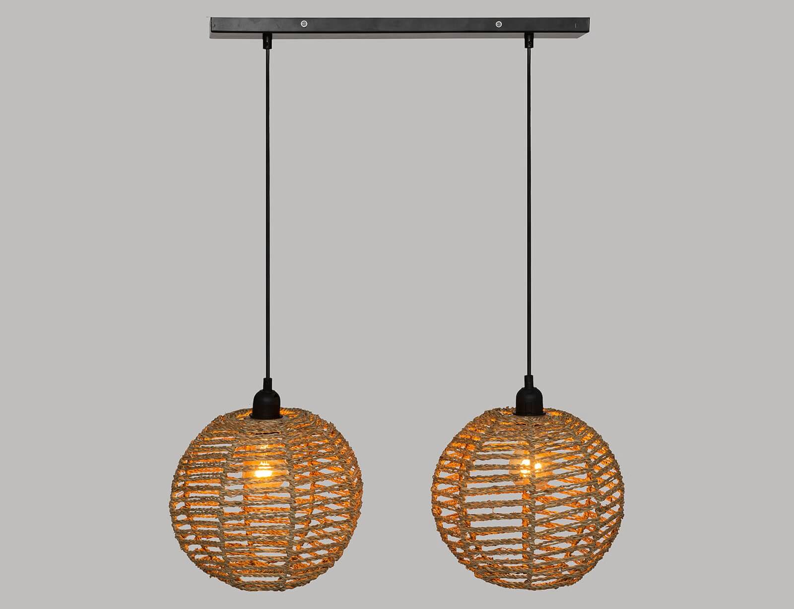 Δίφωτο κρεμαστό φωτιστικό σε μοντέρνο boho στυλ, κατασκευασμένο από μέταλλο με ψάθινη όψη, ιδανικό για την τραπεζαρία, το σαλόνι ή το υπνοδωμάτιο, δημιουργώντας μια μοναδική ατμόσφαιρα. Ο φυσικός σχεδιασμός κάνει τη λάμπα να προσθέτει ζεστασιά και άνεση στο δωμάτιο. Το διαθέσιμο καλώδιο είναι κατασκευασμένο από PVC με μήκος 90εκ., παρέχοντας την δυνατότητα αυξομείωσης του συνολικού ύψους του φωτιστικού.
