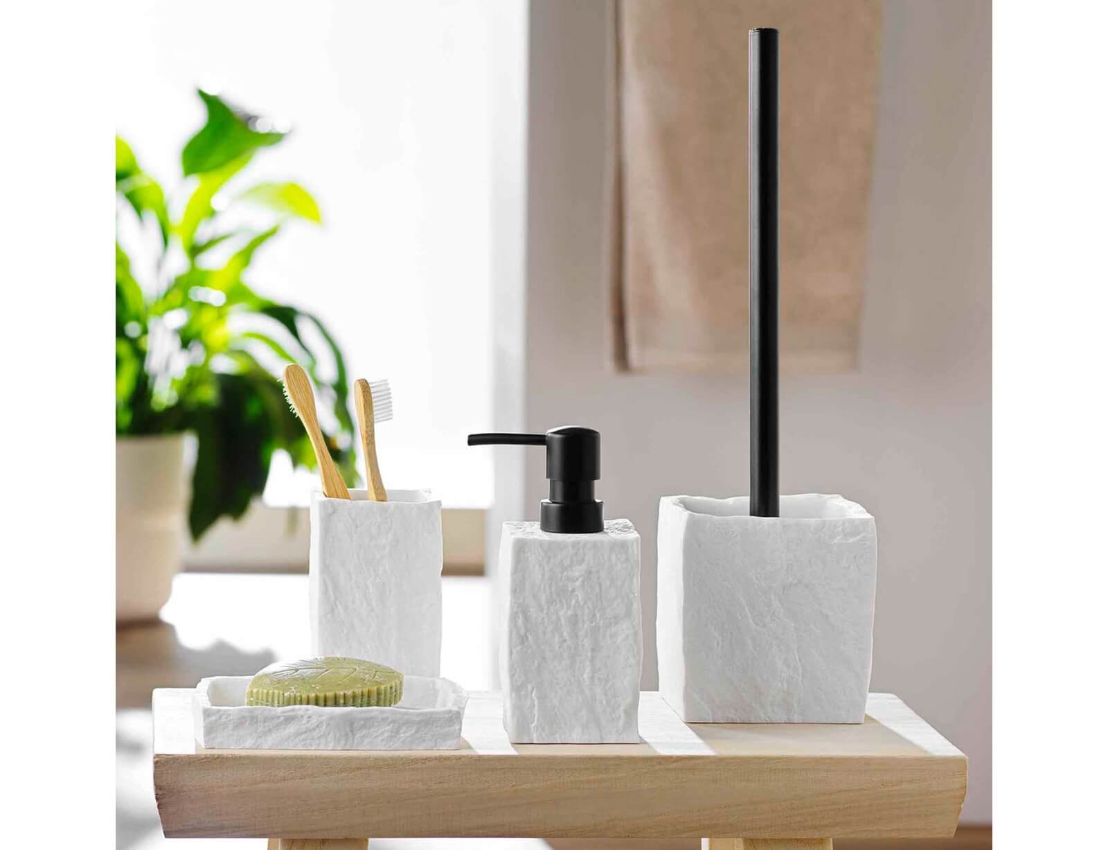 Ανανεώστε την αισθητική του μπάνιου σας και δώστε μια ιδιαίτερη πινελιά με το δοχείο κρεμοσάπουνου από την Douceur d'intérieur. Κατασκευασμένο από polyresin με όψη πέτρας σε λευκό χρώμα, προσφέρει στιβαρότητα και διαχρονική αισθητική, ενώ ο εργονομικός μηχανισμός αντλίας εξασφαλίζει εύκολη και υγιεινή χρήση χωρίς σπατάλη προϊόντος.