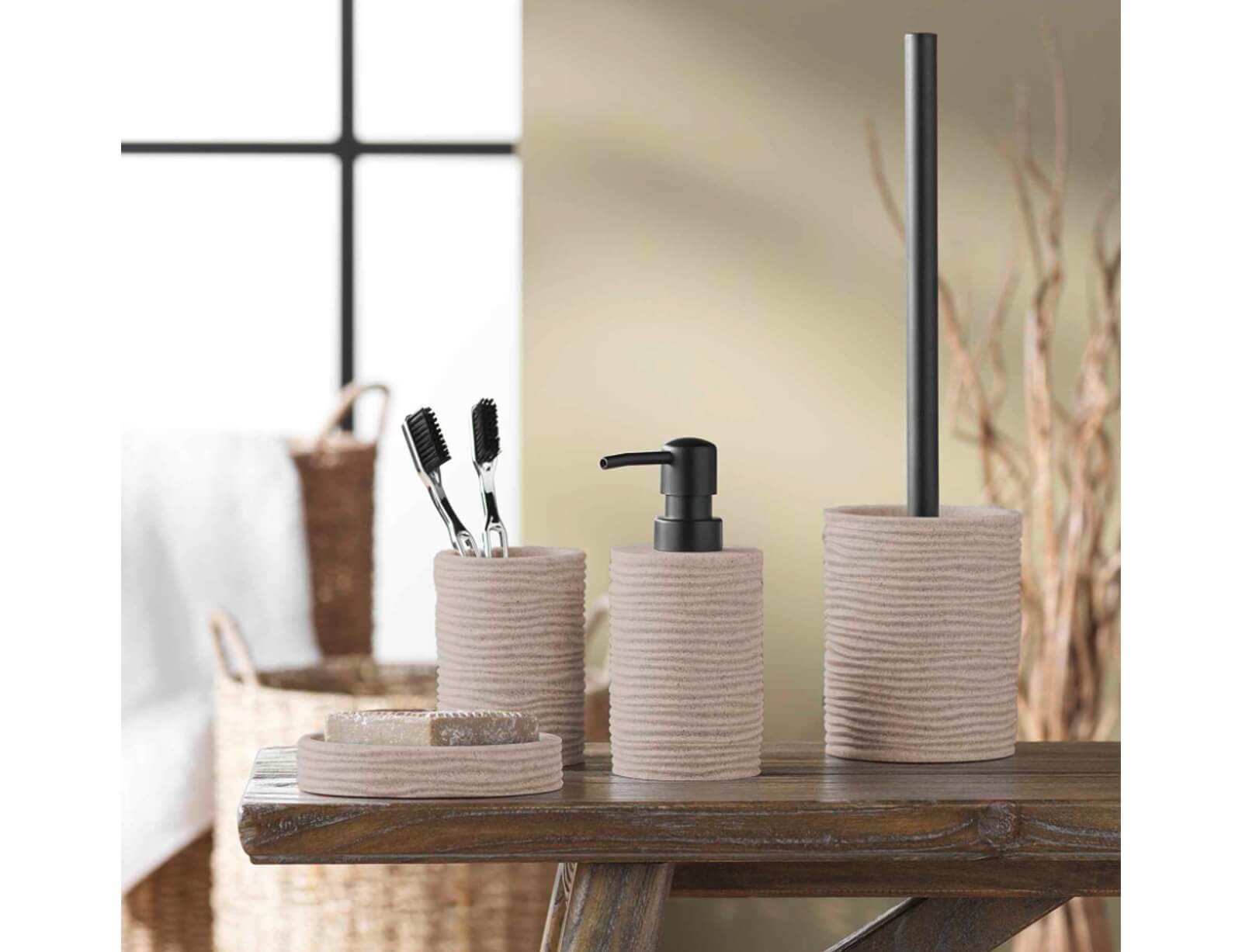 Ποτηροθήκη μπάνιου της εταιρείας Douceur d'intérieur, κατασκευασμένη από Polyresin, η οποία είναι το κατάλληλο αξεσουάρ ώστε να τοποθετείτε τις οδοντόβουρτσες, την οδοντόκρεμα ή οτιδήποτε άλλο χρειάζεται να τακτοποιήσετε. Θα σας βοηθήσει στο να έχετε πάντα ένα οργανωμένο μπάνιο και να επιτυγχάνεται μέγιστη υγιεινή, αφού τα αντικείμενα σας δεν θα είναι εκτεθειμένα οπουδήποτε στον χώρο. Η τοποθέτηση της είναι επικαθήμενη, και καλό θα είναι να τοποθετείται όσο το δυνατόν πιο κοντά στον νιπτήρα ώστε να έχετε άμεση πρόσβαση στο περιεχόμενο.