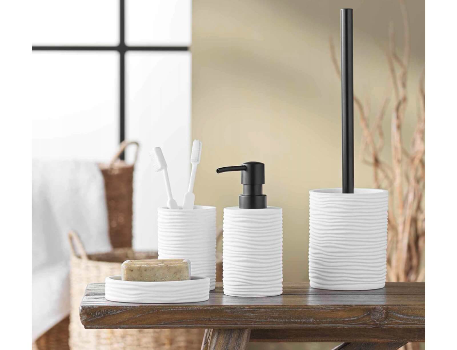 Ανανεώστε την αισθητική του μπάνιου σας και δώστε μια ιδιαίτερη πινελιά με το δοχείο κρεμοσάπουνου από την Douceur d'intérieur. από Polyresin, προσφέρει στιβαρότητα και διαχρονική αισθητική, ενώ ο εργονομικός μηχανισμός αντλίας εξασφαλίζει εύκολη και υγιεινή χρήση χωρίς σπατάλη προϊόντος.