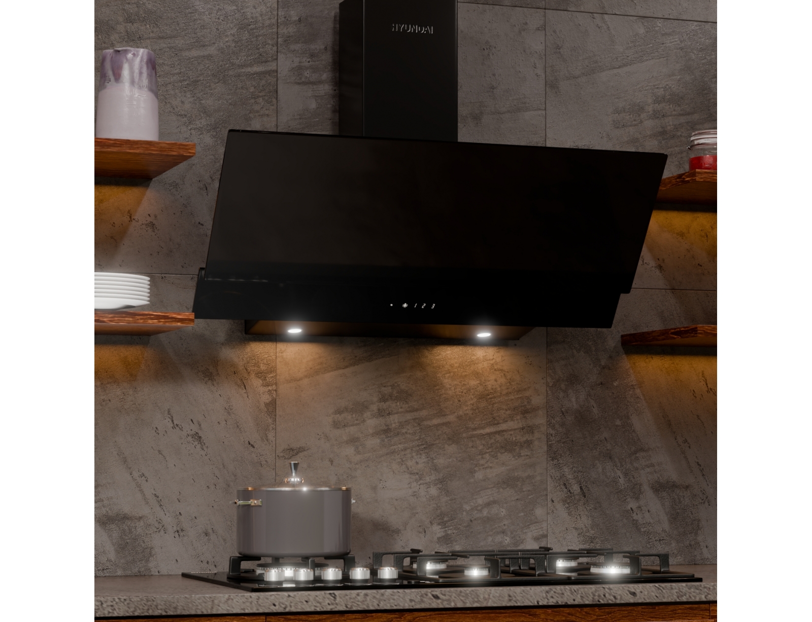 Απορροφητήρας Hyundai HHD24-GL4691B με πλάτος 90cm και απορροφητική ισχύ 650 m³/h - Black